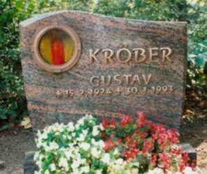 Beispiele fertiger SteineDie Schrift, Symbol und Ornament kann eingehauen sein oder aus edler Bronze aufgesetzt werden. Aus einem preiswerten Industriegrabstein kann durch gute Gestaltung von Ornament und Schrift ein gediegenes Einzelstück werden. |